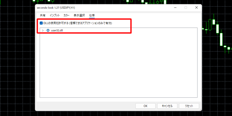 seconds-lookはDLLを使用しています。インジケーターを立ち上げる際に「DLLの使用に許可する」にチェックを入れて下さい。